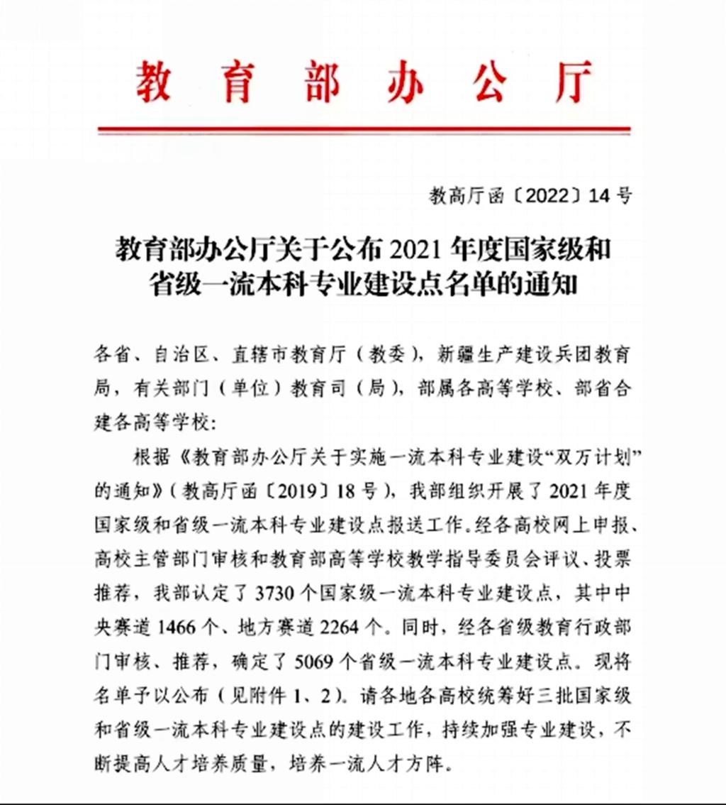 日前,教育部辦公廳公布了2021年度國家級和省級一流本科專業建設點名單,我校應用化學、生物科學和音樂表演3個專業入選國家級一流本科專業建設點,數學與應用數學、化學、生物技術、物聯網工程、制藥工程和生物工程6個專業入選省級一流本科專業建設點。