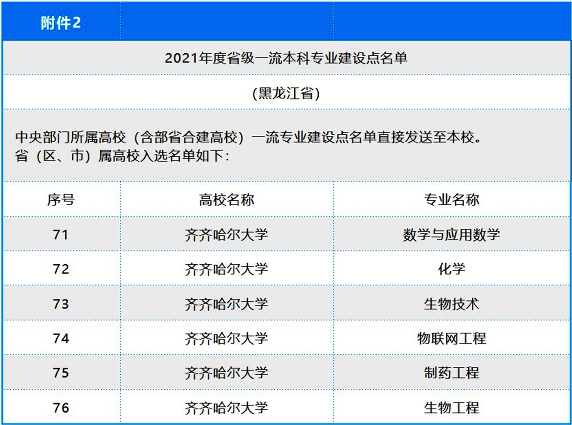 近年來,學校全面貫徹落實新時代全國高等學校本科教育工作會議和教育部《關于加快建設高水平本科教育全面提高人才培養能力的意見》的文件精神,以一流本科專業建設“雙萬計劃”為引領,以專業內涵建設為核心,加強專業建設的頂層設計,先后出臺了《齊齊哈爾大學應用型轉型發展工作實施方案》《齊齊哈爾大學人才培養戰略定位論證及專業結構優化調整論證工作方案》《齊齊哈爾大學一流本科專業建設實施方案》等文件,通過優化調整專業結構、修訂人才培養方案、加強師資隊伍建設、深化課程建設改革、強化教學資源保障和完善質量保障體系等舉措,不斷提升人才培養質量,取得了顯著建設成效。