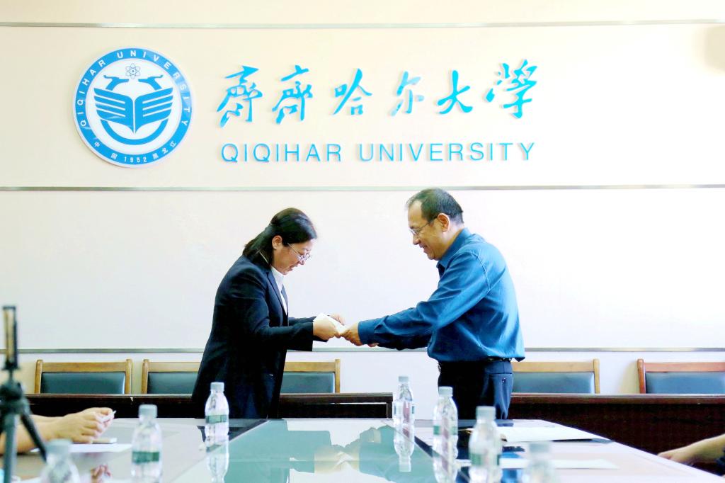 陳桂芝代表學校向李敬民校友心系母校捐資助學的反哺之舉表示由衷的感謝和深深地敬意,并誠邀李敬民校友在母校70華誕之際,攜親友相聚齊大、共襄盛典。陳桂芝說,李敬民校友是我校20萬齊大校友中的優秀代表,在個人事業取得輝煌成就的同時,熱心公益慈善,積極關心和支持學校事業發展,用實際行動表達了對母校“一朝齊大人,一生齊大情”的拳拳赤子之心,讓我們深為感動和自豪。陳桂芝表示,母校將傳遞校友愛心、用好校友捐贈,不斷提高辦學質量,努力辦好人民滿意大學,為黨和國家努力培養更多更好的高素質人才。相信在全體師生、廣大校友和社會各界朋友的共同努力下,齊齊哈爾大學一定會早日建成有特色高水平應用型綜合大學!