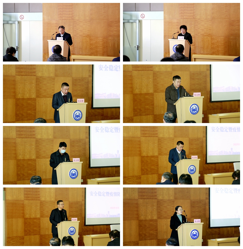 校長董玉庭從牢固樹立安全發展理念、堅決筑牢政治安全和意識形態安全防線、全面落實校園安全管理措施、統籌做好校園疫情防控、扎實開展輿論氛圍營造工作等五個方面就進一步做好黨的二十大召開期間學校安全穩定和疫情防控工作進行了安排部署。
