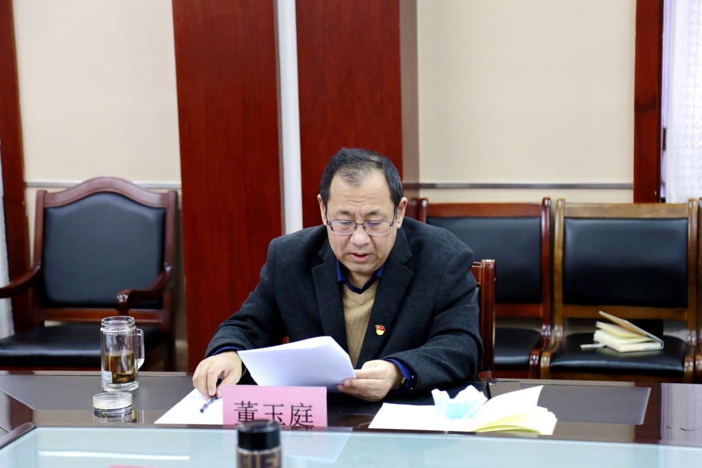 12月9日下午,我校以線上線下相結合的方式舉辦學習貫徹黨的二十大精神宣講動員會暨首場宣講報告會,主會場設在辦公樓504會議室。會議由校長、校黨委副書記董玉庭主持。