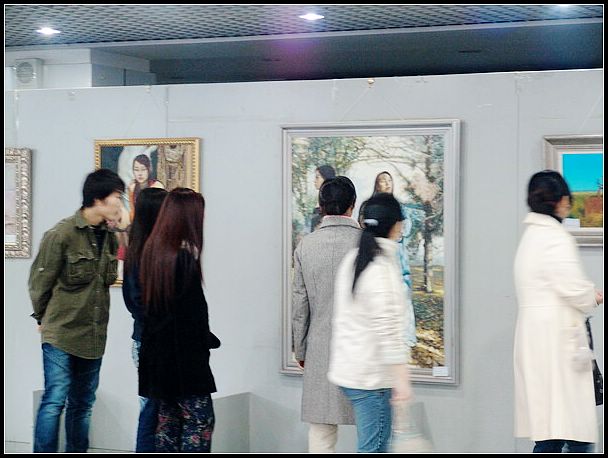 作為承辦單位的我校藝術學院對此次畫展進行了精心地設計與建構。美術館里各個展區被劃分了不同的風格單元,展板上錯落有致地掛滿了各式風格的原創之作,使人置身于美侖美奐的藝術空間。同時,我校藝術學院充分發揮多門類藝術資源優勢,在美術館展廳里根據展出畫作的風格、意境等現場演奏精美的小提琴協奏曲等優美的音樂作品,使觀眾在欣賞畫作的同時也能夠聆聽到高雅的音樂,音畫和諧,美不勝收,這一創舉令人耳目一新,收到了較好的效果,贏得了好評。