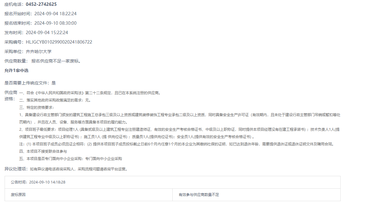 上一條:齊齊哈爾大學(xué)逸夫樓考研保密室改造工程(第3次)比價(jià)采購公告(轉(zhuǎn)自黑龍江省政府采購網(wǎng))