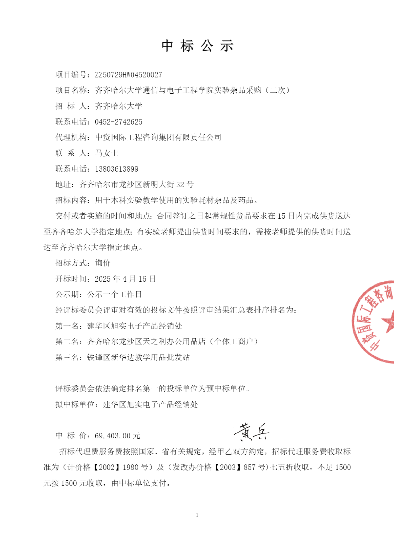下一條:齊齊哈爾大學生命科學與農林學院一流專業建設項目設備采購結果公告(轉自黑龍江省政府采購網)