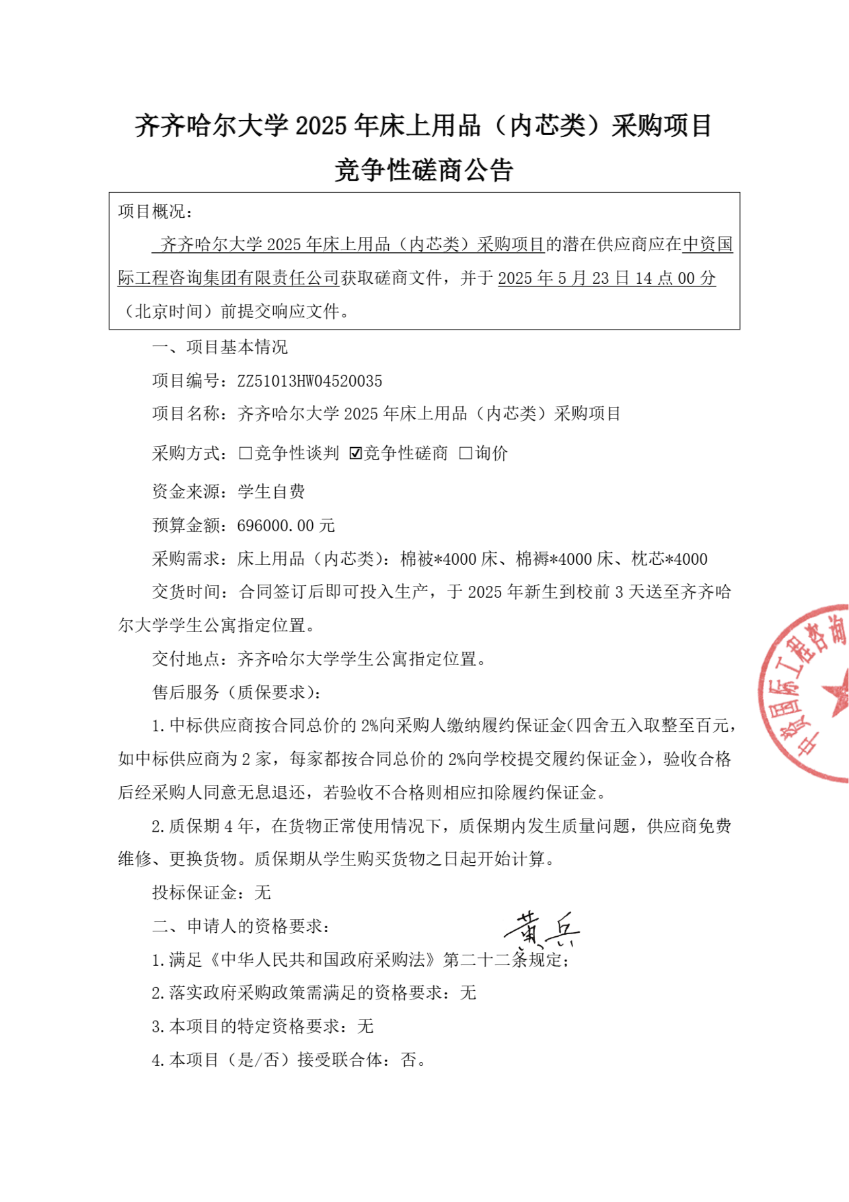 下一條:齊齊哈爾大學2025年床上用品(單罩類)采購項目競爭性磋商公告(轉自中國招標投標公共服務平臺)