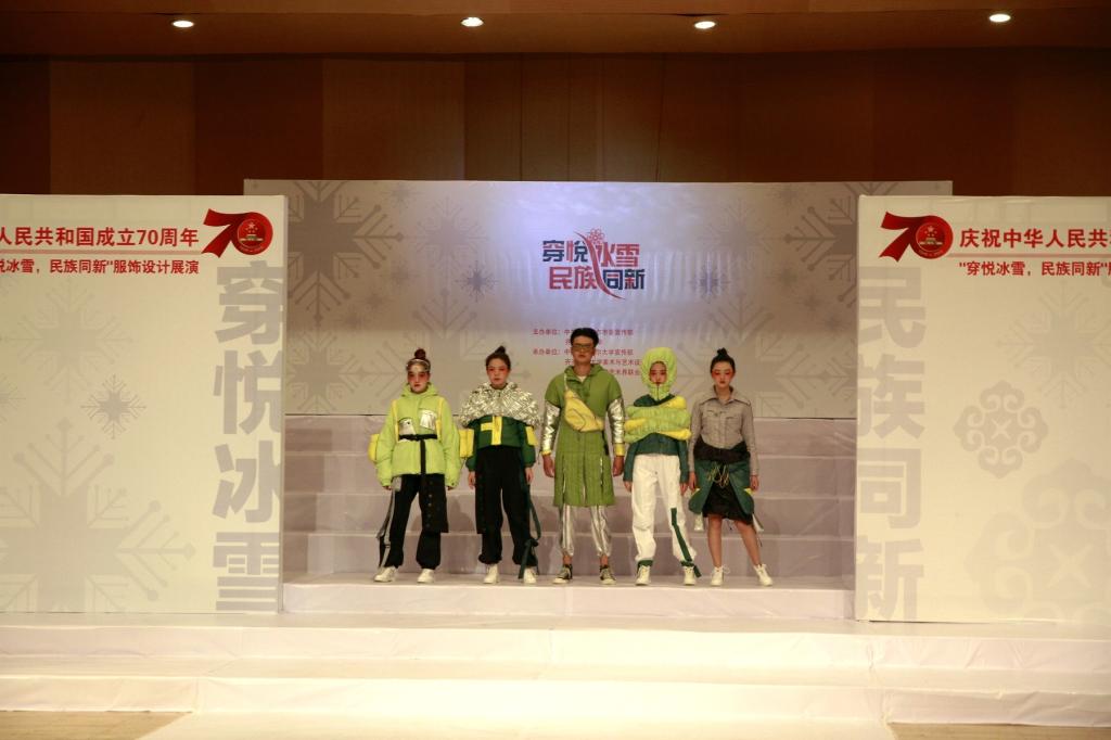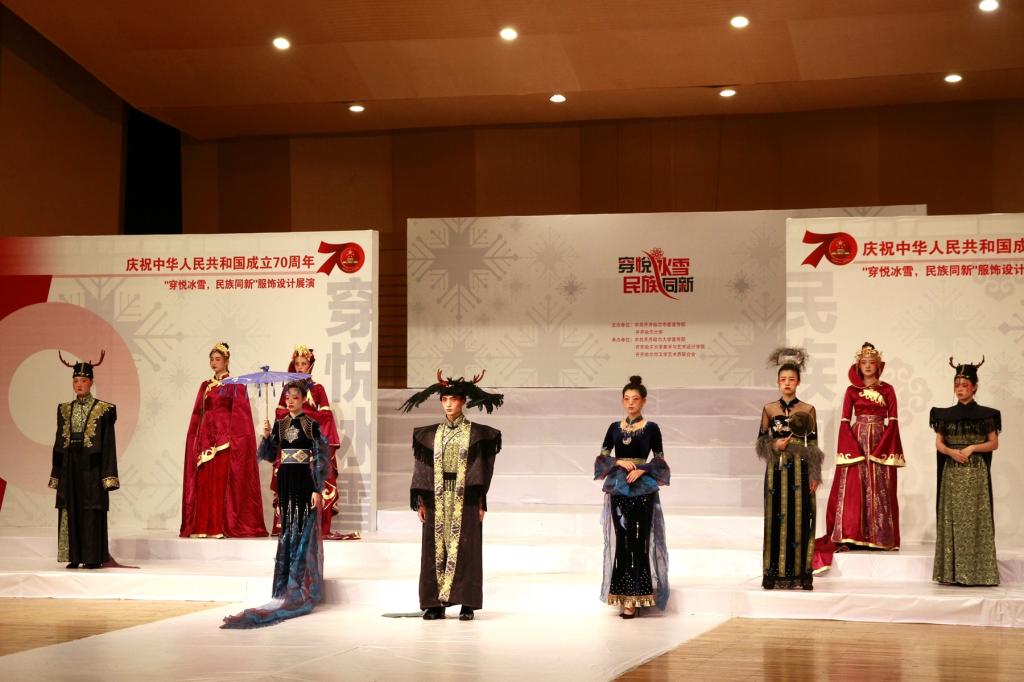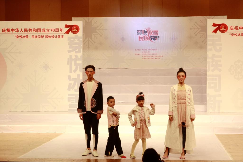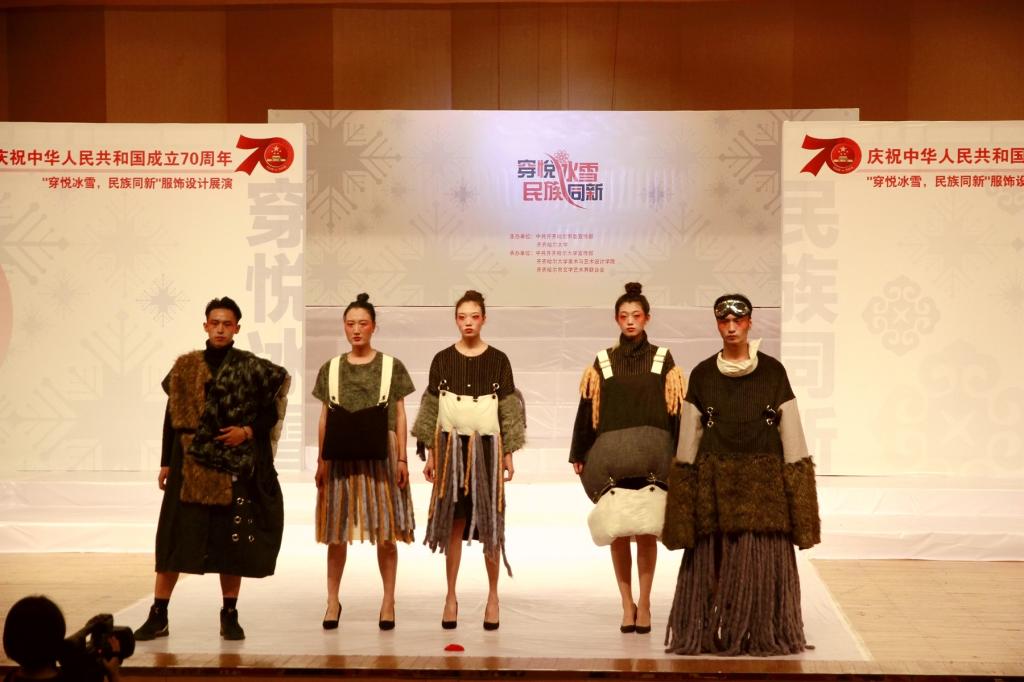 本次服裝設計展演以齊齊哈爾市委與我?!侗┓椢幕芯俊讽椖垦芯繉嵺`教學為主體,以“穿悅冰雪·民族同新”為主題,著眼于北方冰雪服飾的研究和設計,切實增強了設計作品的實用性和市場性,力圖展現新中國成立七十周年以來服飾設計的新風貌。