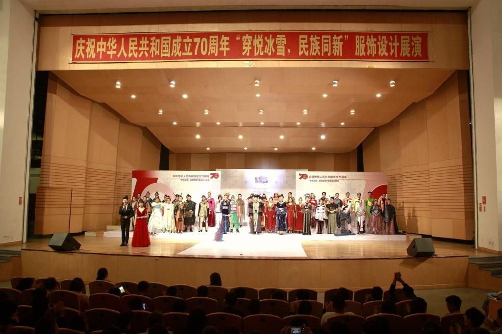 在新中國70華誕即將來臨之際,在學校上下深入開展“不忘初心、牢記使命”主題教育之時,9月18日中午,我校美術與藝術設計學院承辦的慶祝中華人民共和國成立70周年“穿悅冰雪·民族同新”服飾設計展演在音樂廳舉行。