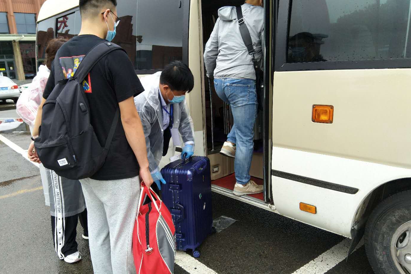 黨旗高揚(yáng),引領(lǐng)前進(jìn)方向;殷殷囑托,化為不竭動(dòng)力。機(jī)電工程學(xué)院機(jī)械173班的張乘翥,家住內(nèi)蒙古赤峰市,是首批最早返校的學(xué)生,他感慨地說(shuō):“一下車接站老師就給我披上了雨衣,感覺(jué)很溫暖。希望其他返校同學(xué)都能遵守學(xué)校規(guī)定,做好自我防護(hù),服從管理分配,保障自身安全。”“終于回到環(huán)湖校園,感到很開心。早上天剛蒙蒙亮,火車就到站了,老師已經(jīng)早早等候接站,心里很感動(dòng)。今后我要在校園里更加努力學(xué)習(xí),做正能量的堅(jiān)守者,樂(lè)觀積極地應(yīng)對(duì)疫情,嚴(yán)格做好自我防護(hù),與老師同學(xué)一起努力守護(hù)校園一方凈土。”食品與生物工程學(xué)院返校研究生張以超說(shuō)。