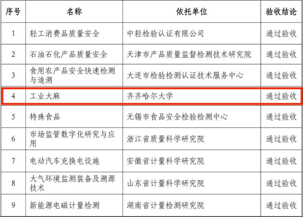 9月4日,國家市場監(jiān)督管理總局正式公布了2021年批準(zhǔn)建設(shè)的國家市場監(jiān)督管理總局重點(diǎn)實(shí)驗(yàn)室和技術(shù)創(chuàng)新中心集中驗(yàn)收結(jié)果名單,我校“國家市場監(jiān)督管理總局技術(shù)創(chuàng)新中心(工業(yè)大麻)”順利通過驗(yàn)收。